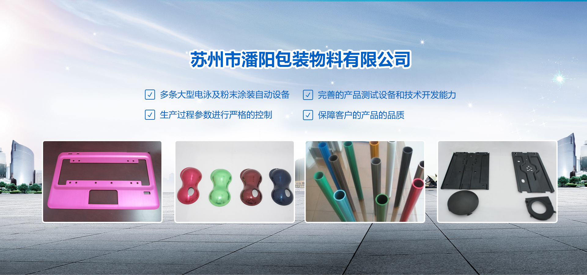 蘇州市潘陽(yáng)包裝物料有限公司創(chuàng)建于2002年4月。坐落于美麗的蘇州相城。占地面積8000㎡,目前公司人員約150人,技術(shù)及管理人員約30余人。 專業(yè)從事彩色、黑色粉末涂裝及電泳等表面處理加工服務(wù)。公司現(xiàn)有多條大型電泳及粉末涂裝自動(dòng)設(shè)備,并有完善的產(chǎn)品測(cè)試設(shè)備和技術(shù)開發(fā)能力,對(duì)生產(chǎn)過(guò)程參數(shù)進(jìn)行嚴(yán)格的控制,從而保障了客戶的產(chǎn)品的品質(zhì)。公司已通過(guò)TS16949、ISO14000體系認(rèn)證,已經(jīng)與亞太和歐美地區(qū)的廣大客戶建立緊密的業(yè)務(wù)合作關(guān)系。